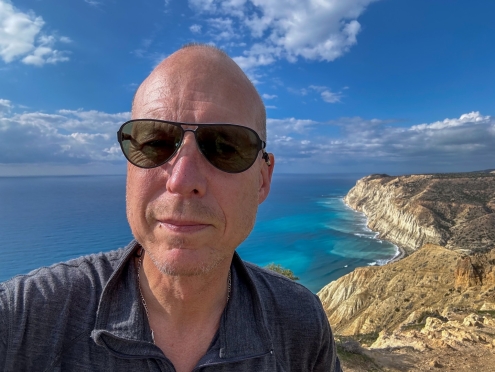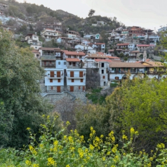 Cypern har över 300 soldagar på året. Det är ännu en morgon där solen flödar från en blå himmel. Vi står klara utanför hotellets reception i bergsbyn Kalopanagiotis med färdigpackade resväskor. Jag har checkat ut oss för ett litet ögonblick...